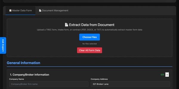 Upload your contract and let AI extract, auto-fill, and manage all 53 TREC and TAR forms in your transaction.